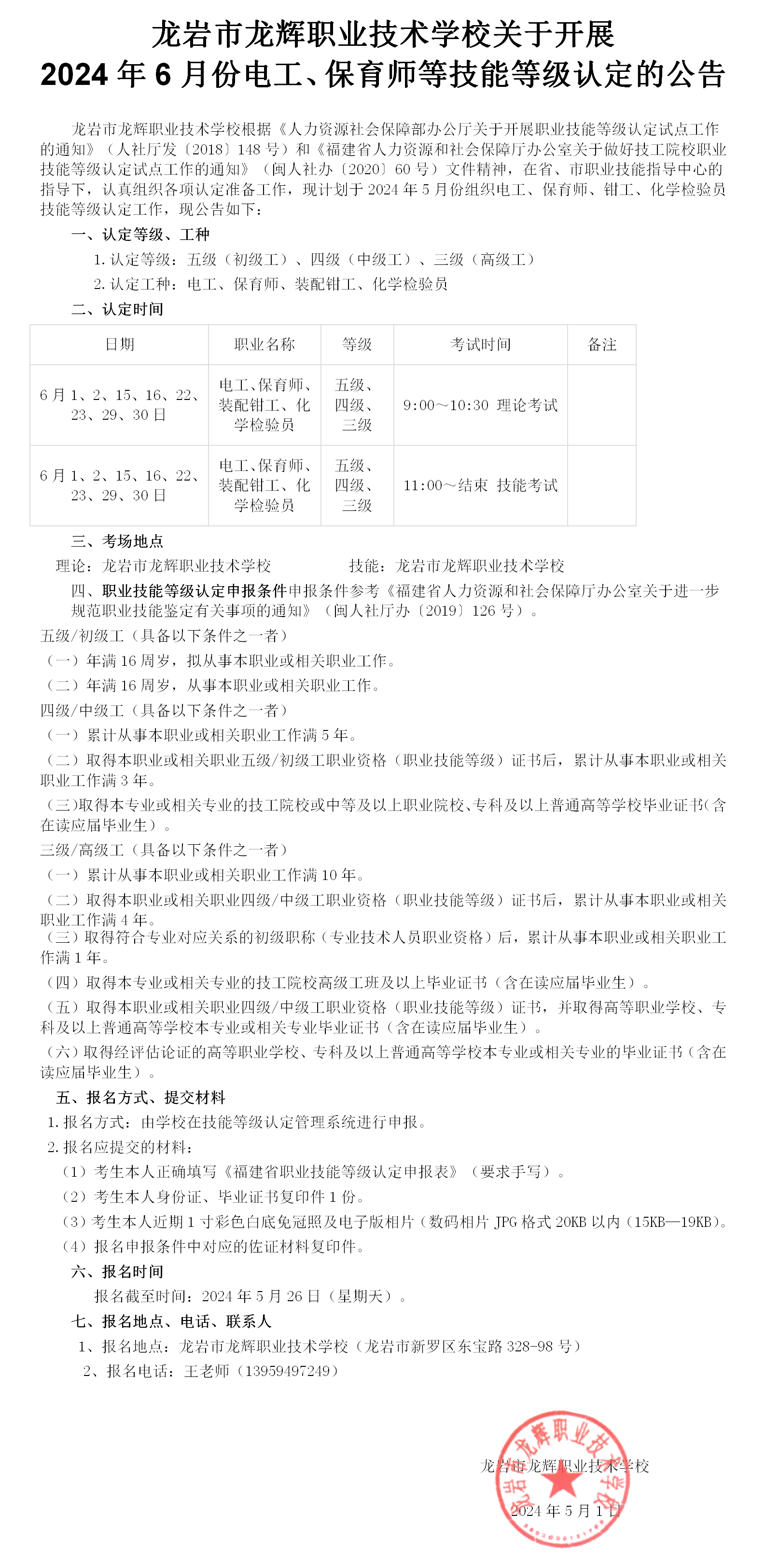 2024年6月份電工、鉗工、保育師、化學(xué)檢驗(yàn)員公示